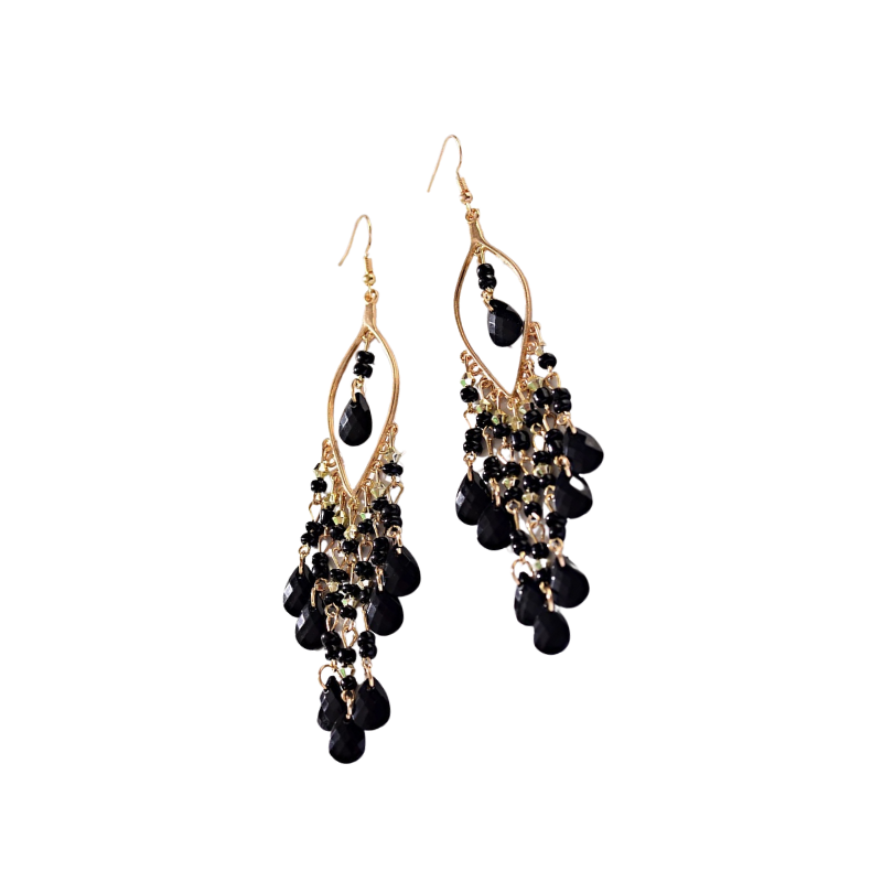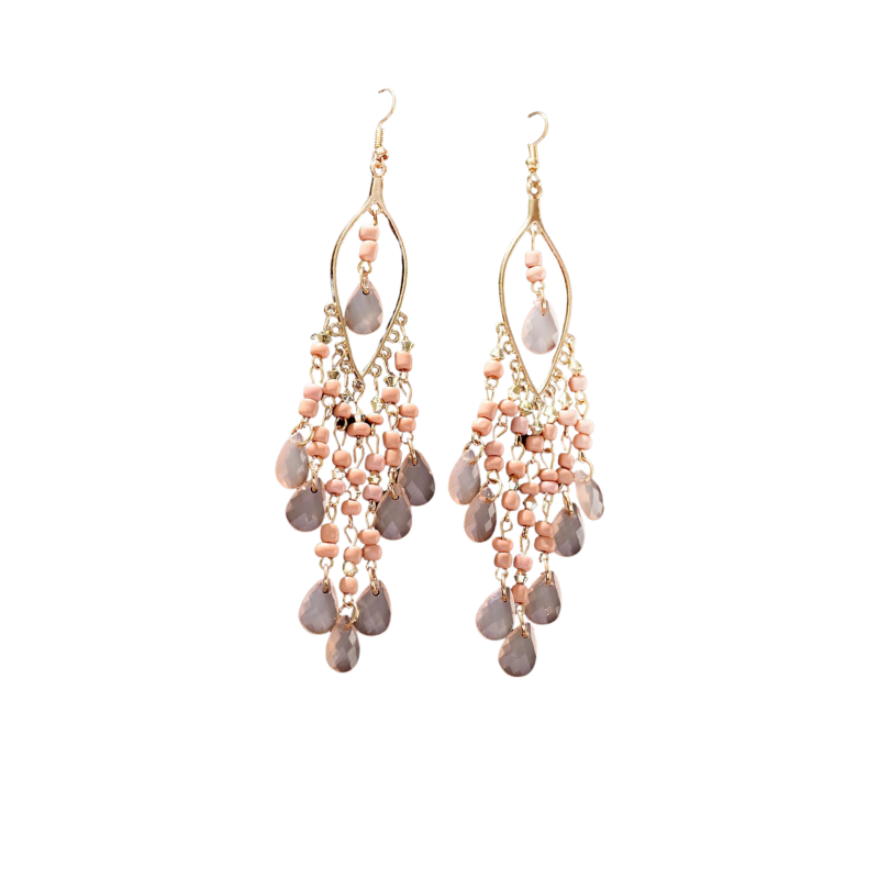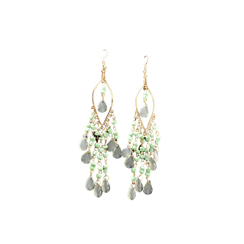 Classic, very romantic water drop down dangle earrings. Gold plated, fashion earrings with multi color beaded design. Great pop of color and glam to any outfit of the day.